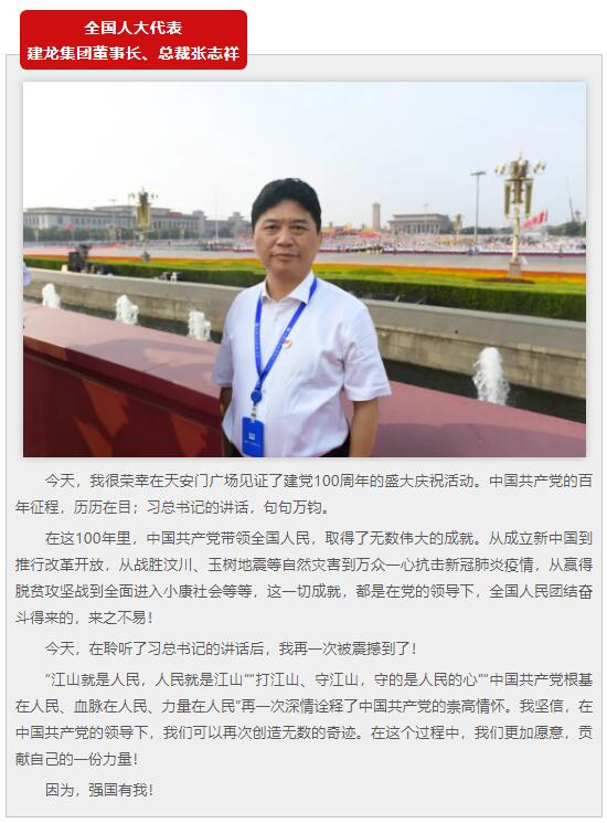 全國人大代表建龍集團董事長、總裁張志祥全國勞動模范建龍川鍋唐成鳳受邀出席了此次慶祝大會